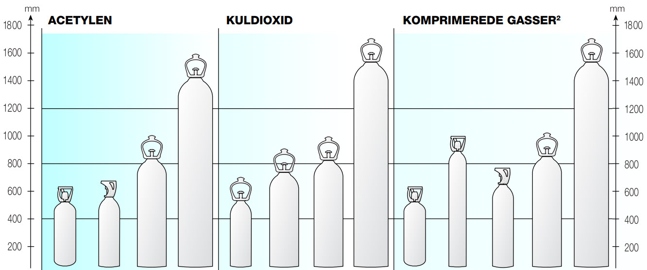Acetylen og CO2 er dog med henholdsvis 16 og 50 bars tryk.